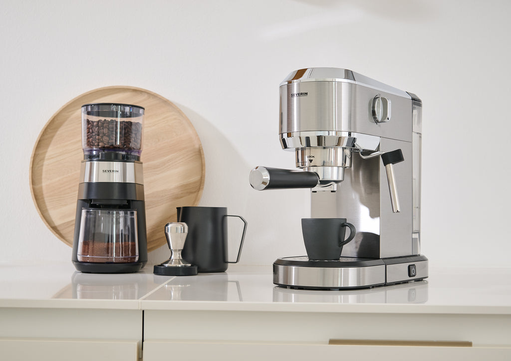 تجمع مطحنة القهوة SEVERIN KM 3880 بين الأداء العملي والتصميم الأنيق باللون الأسود والفولاذ المقاوم للصدأ، لتكون إضافة مثالية لأي مطبخ عصري.